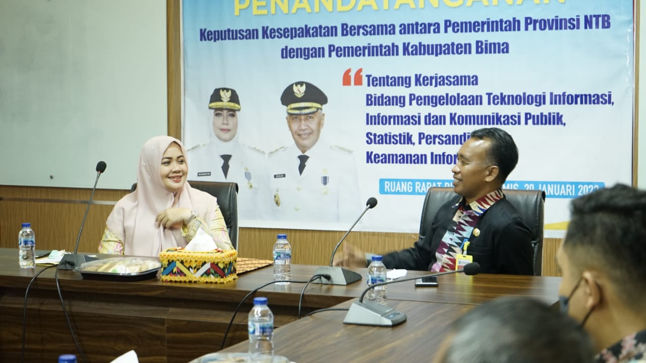 Penandatanganan perjanjian kerja sama ini diawali dengan penandatanganan MoU oleh Walikota Bima, H. Muhammad Lutfi di Kota Bima. Kemudian penandatanganan MoU oleh Bupati Bima, Hj. Indah Dhamayanti Putri di ruang kerjanya kantor Bupati Bima. Penandatanganan MoU itu didampingi Kepala Dinas Kominfotik NTB, Dr. Najamuddin Amy. Penandatanganan MoU tersebut juga diperkuat melalui PKS antara Dinas Kominfotik NTB dengan Dinas Kominfotik kota Bima dan Kabupaten Bima.