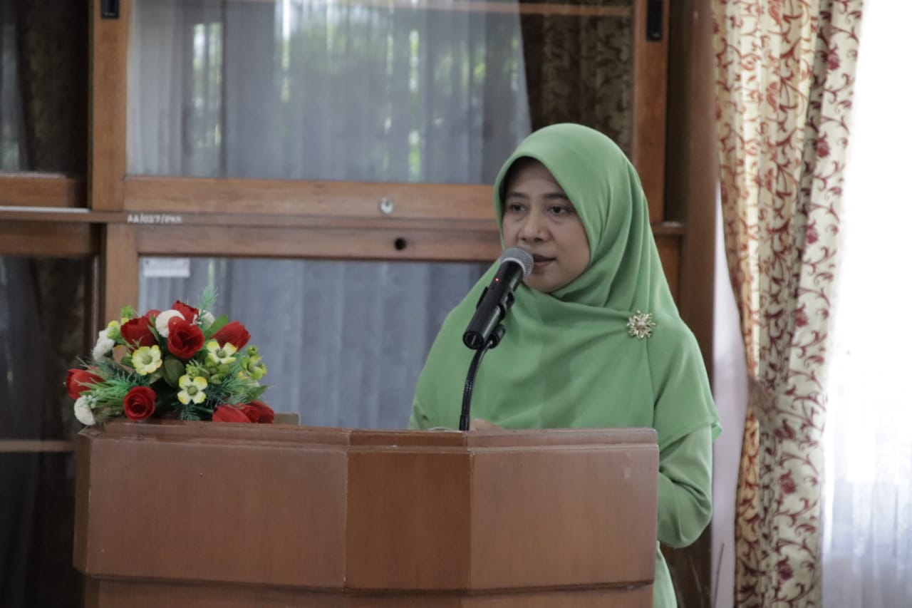 Foto: Ketua TP PKK provinsi NTB,  Hj. Niken Saptarini Widyawati, memberikan sambutan pada acara Komunikasi informasi edukasi (KIE) tentang keamanan mutu,gizi pangan (10/12), di kantor PKK prov. NTB.