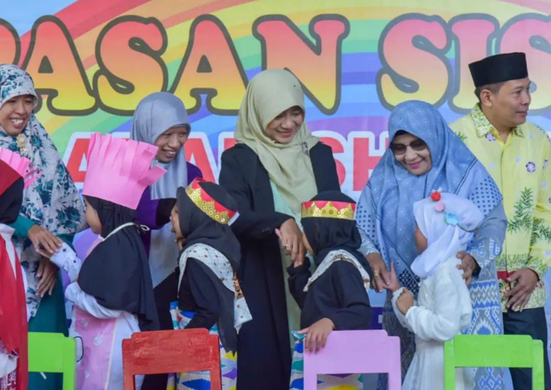 Bunda PAUD Provinsi NTB, Hj. Niken Saptarini Zulkieflimansyah menghadiri acara pelepasan siswa-siswi Taman Kanak-kanak Islam Terpadu (TK IT) Anak Soleh Kediri, Lombok Barat pada Sabtu, 17 Juni 2023.