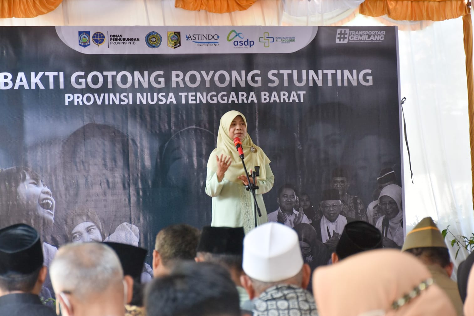 Ketua TP. PKK Provinsi NTB, Hj. Niken Saptarini Widyawati Zulkieflimansyah melaunching Gotong Royong Bhakti Stunting di Desa Montong Baan Selatan, Kecamatan Sikur, Lombok Timur, (17/6).