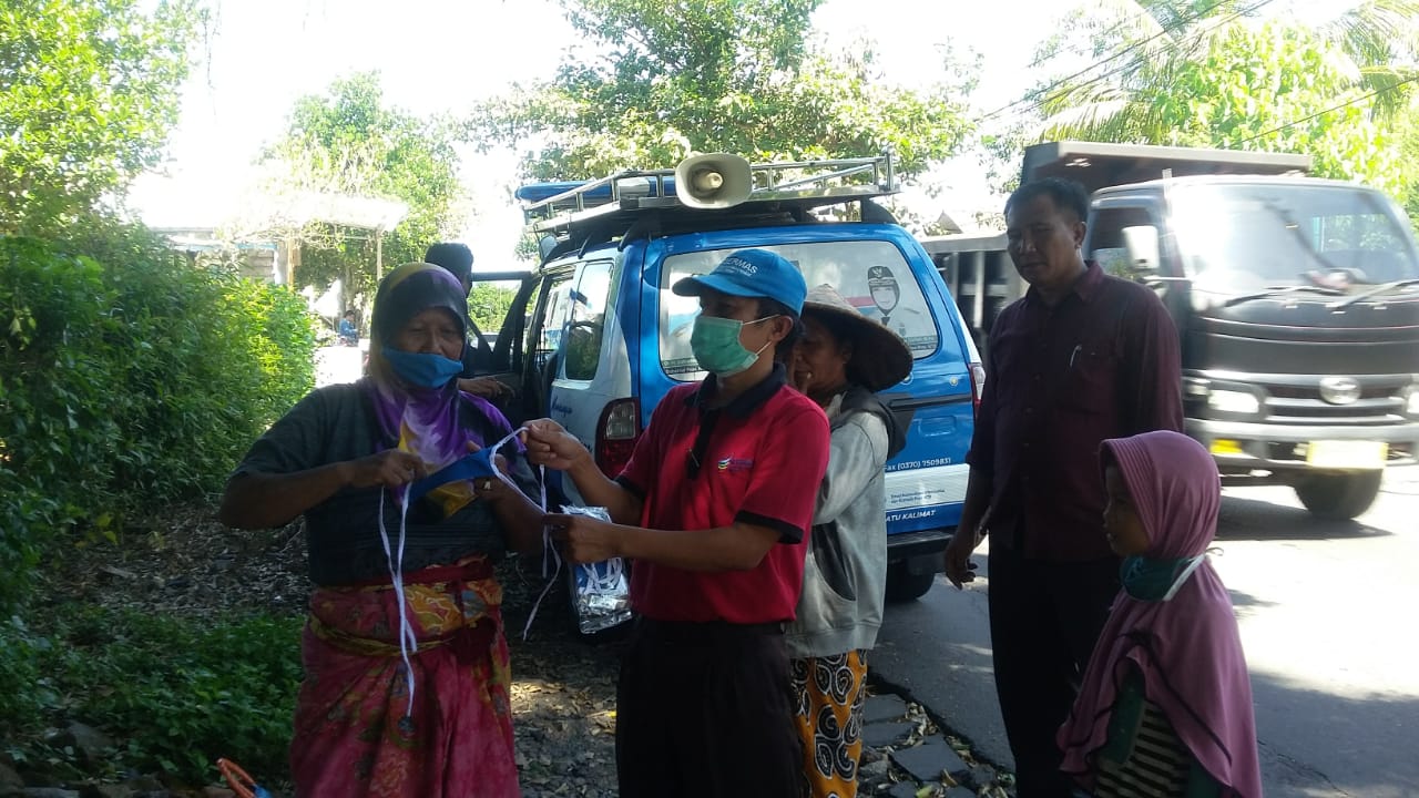Disamping sosialisasi dan gerakan ayo pakai masker kata Dudut, dilakukan memberian masker gratis dan paket sembako untuk manula dan beberapa pemulung yang ditemui dibeberapa titik jalan.
