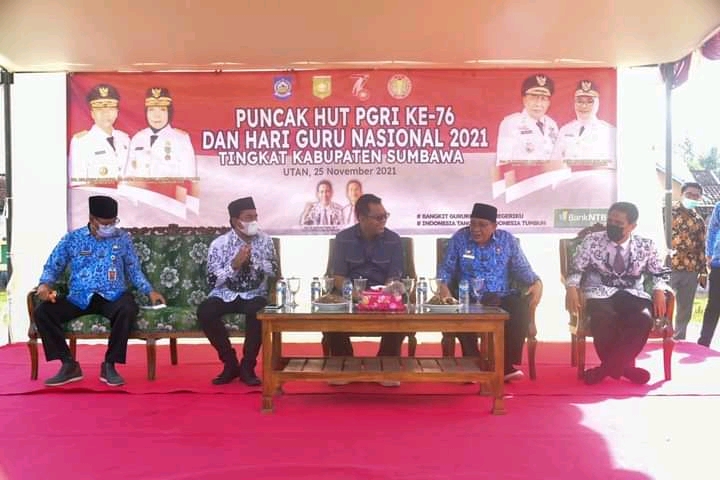 Gubernur NTB, Dr. H. Zulkieflimansyah menghadiri peringatan Hari Ulang Tahun ke-76 PGRI dan Hari Guru Nasional 2021 yang dipusatkan di Taman Sangaria Utan Kecamatan Utan, Kabupaten Sumbawa, Kamis (25/11).