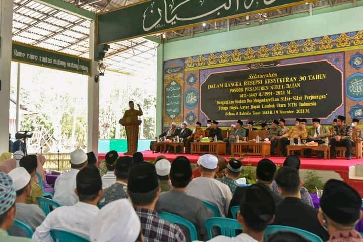 Lombok Utara - Merayakan 30 tahun perjalanan Pondok Pesantren Nurul Bayan, Telaga Bagek, Anyar, Bayan, Lombok Utara, Gubernur Dr Zulkieflimansyah SE, M. Sc menggelari Pondok Pesantren yang didirikan KH Abdul Karim Abdul Ghofur sebagai cahaya dari utara. Bentuk apresiasi ini diungkapkan Gubernur atas kontribusi para kyai dan ustadz dalam pembangunan NTB.