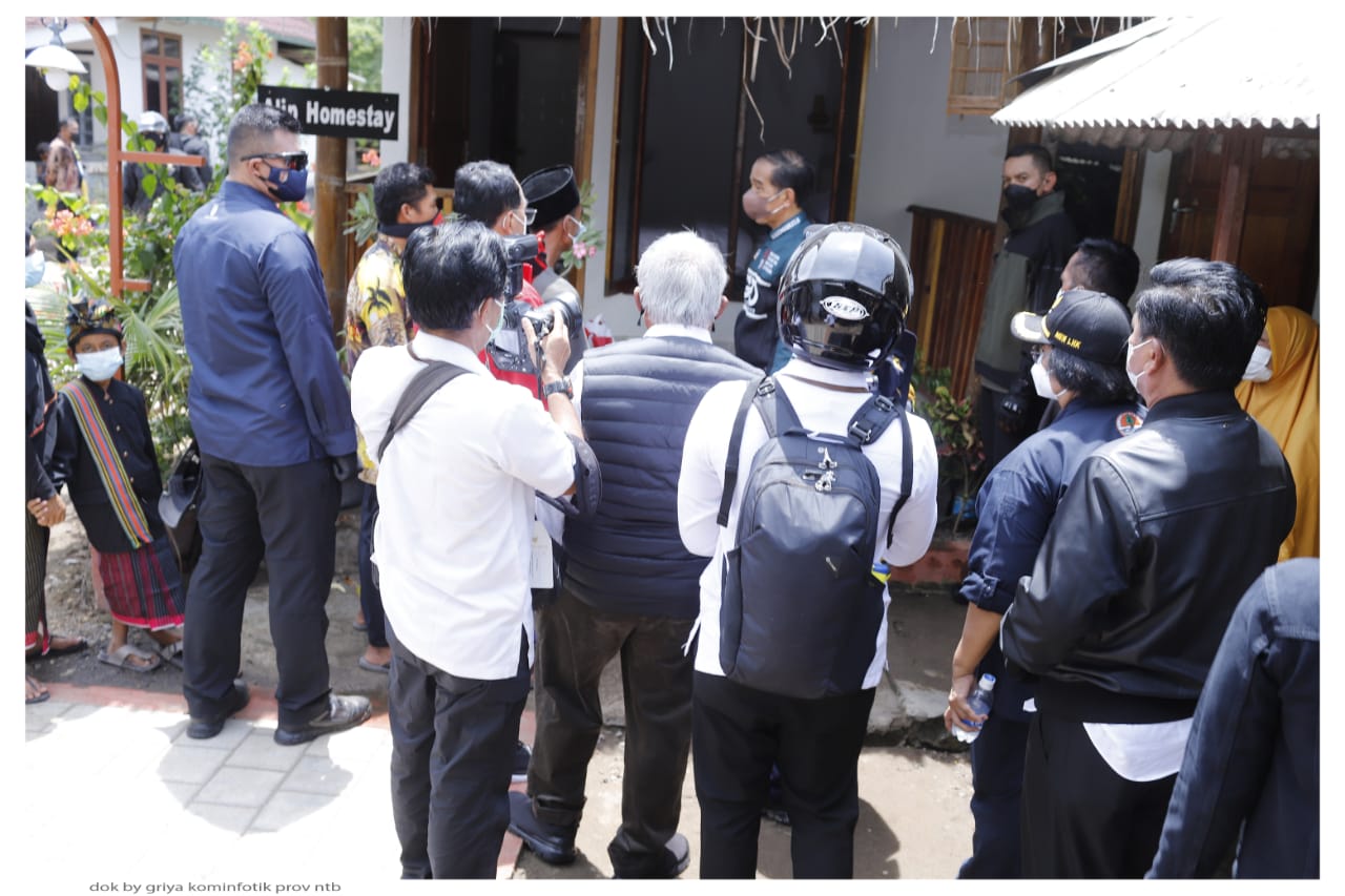 Gubernur NTB Dr. H. Zulkieflimansyah mendampingi Presiden RI, Ir. Joko Widodo meninjau kesiapan beberapa Homestay diwilayah Dusun Bangah dan Grupuk Lombok Tengah, (13/01).