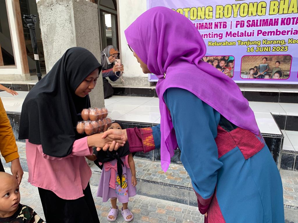 Launching Gotong Royong Bakti Stunting di kecamatan Sekarbela juga dirangkaikan dengan pembagian telur kepada puluhan balita. Pembagian telur secara gratis tersebut didukung oleh PW Salimah NTB, PD Salimah Kota Mataram dan PKK Provinsi NTB. (Man/her/ikp@kominfo)