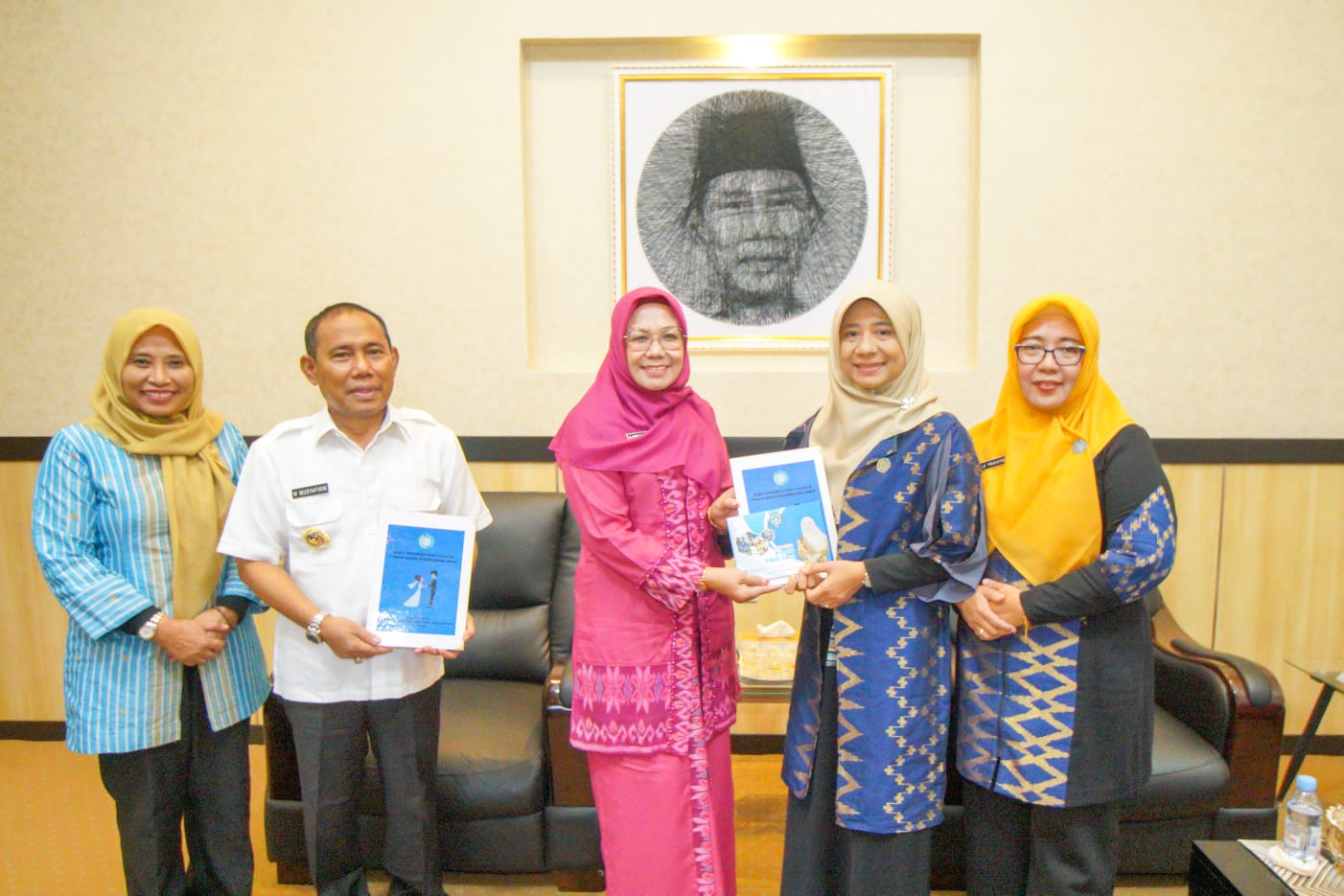Di akhir pertemuan tersebut, Bunda Niken menyerahkan buku pedoman penyuluhan pencegahan pernikahan anak dan buku saku bunda PAUD Desa kepada Bupati dan Ketua TP PKK KSB. (kominfotikntb)