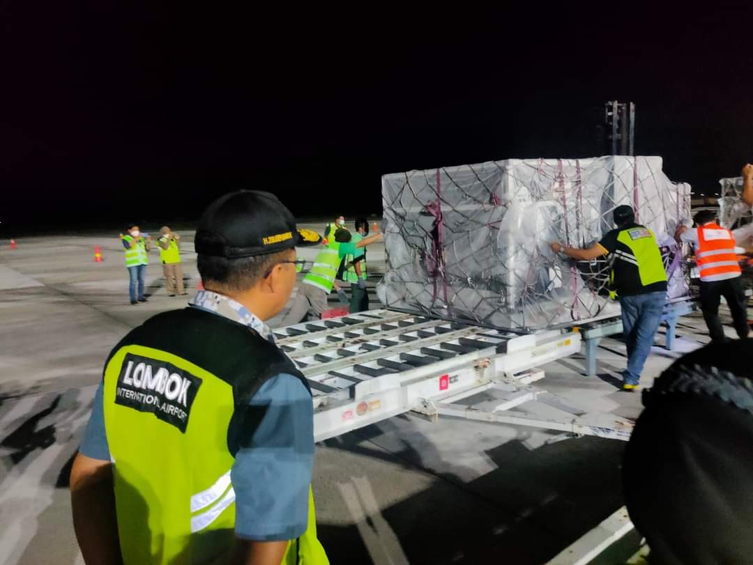 Kini BIZAM tengah menanti kedatangan Boeing 777 Freighter lainnya yang telah berangkat dari Doha dan akan dijadwalkan mendarat di BIZAM Lombok. (Diskominfotikntb)