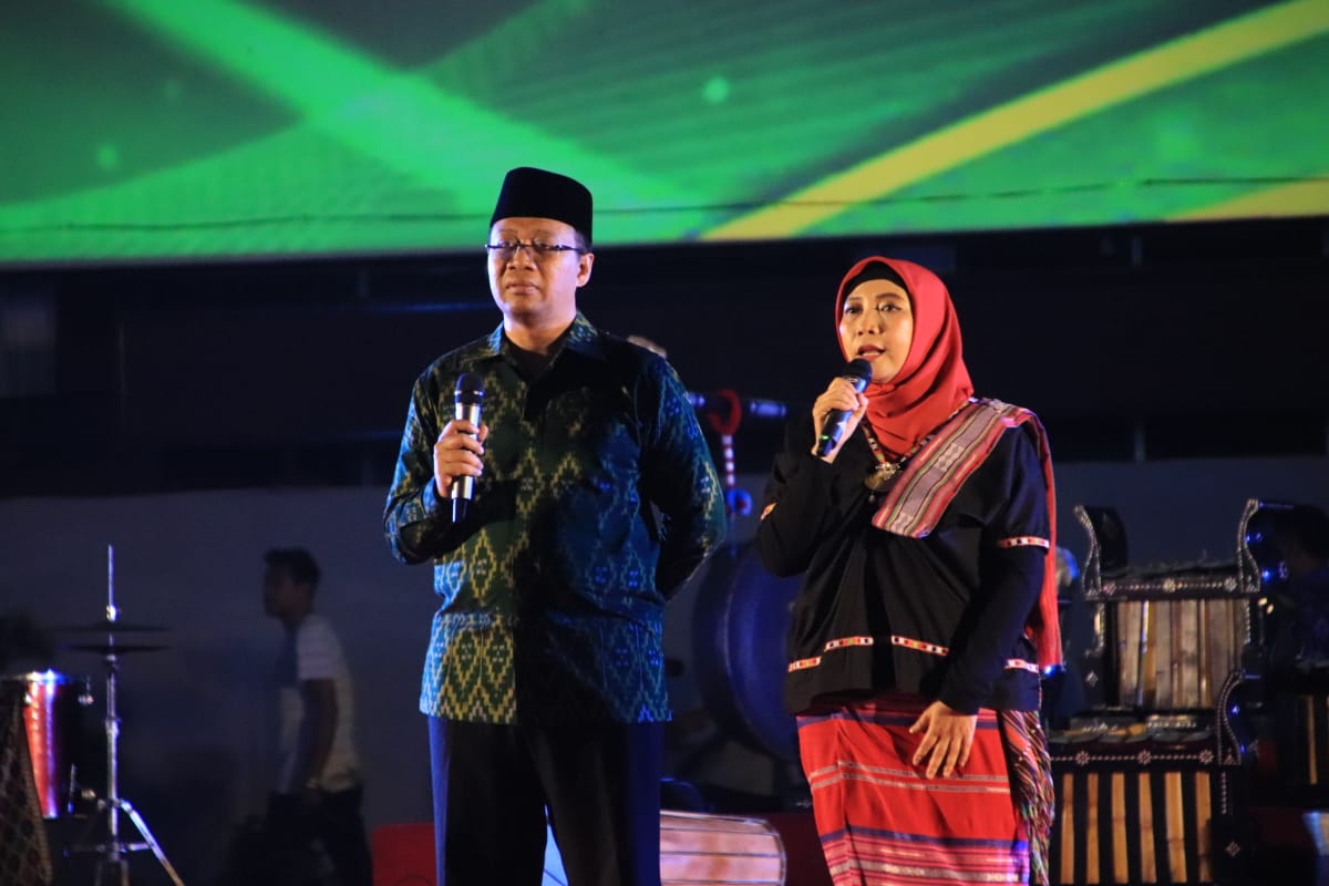 Pada saat itu, Gubernur Zul mengajak Wakil Gubernur Dr. Ir. Hj. Sitti Rohmi Djalilah, M. Pd, untuk naik ke atas panggung.