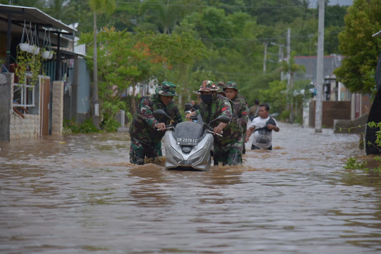 Dalam meninjau lokasi banjir, gubernur NTB didampingi Danrem 162 Wira Bhakti Brigjen TNI Ahmad Rizal Ramdhani, Kalak BPBD NTB, Kadis Sosial, Kadis PUPR NTB dan sejumlah lembaga relawan masyarakat. (Diskominfotik)