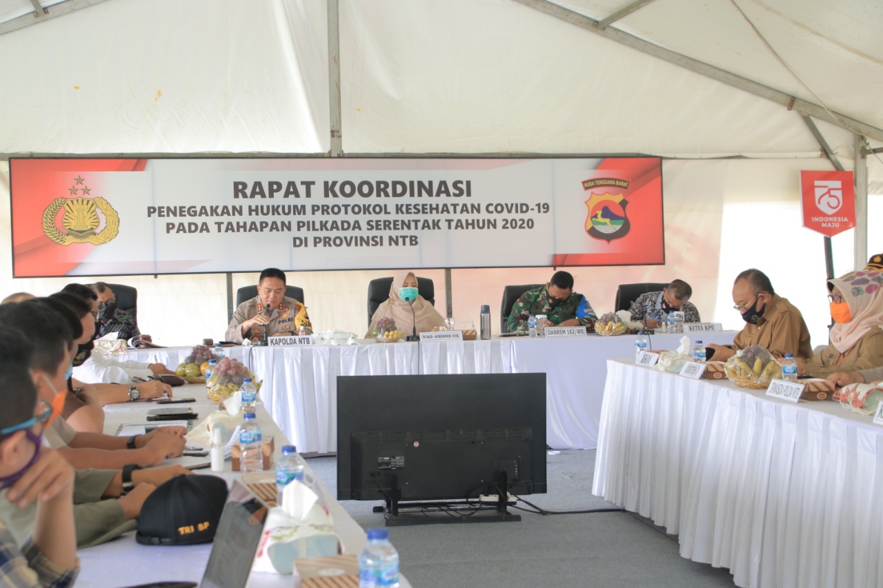 "Saat ini tahapan Pilkada dapat dilakukan secara virtual atau online melalui Video Conference atau webinar di media online atau aplikasi yang tersedia," himbau Wagub saat menghadiri Rapat Koordinasi Penegakan Hukum Protokol Kesehatan Covid-19 pada Tahapan Pilkada Serentak Tahun 2020, Senin (14/9/2020) di Polda NTB.