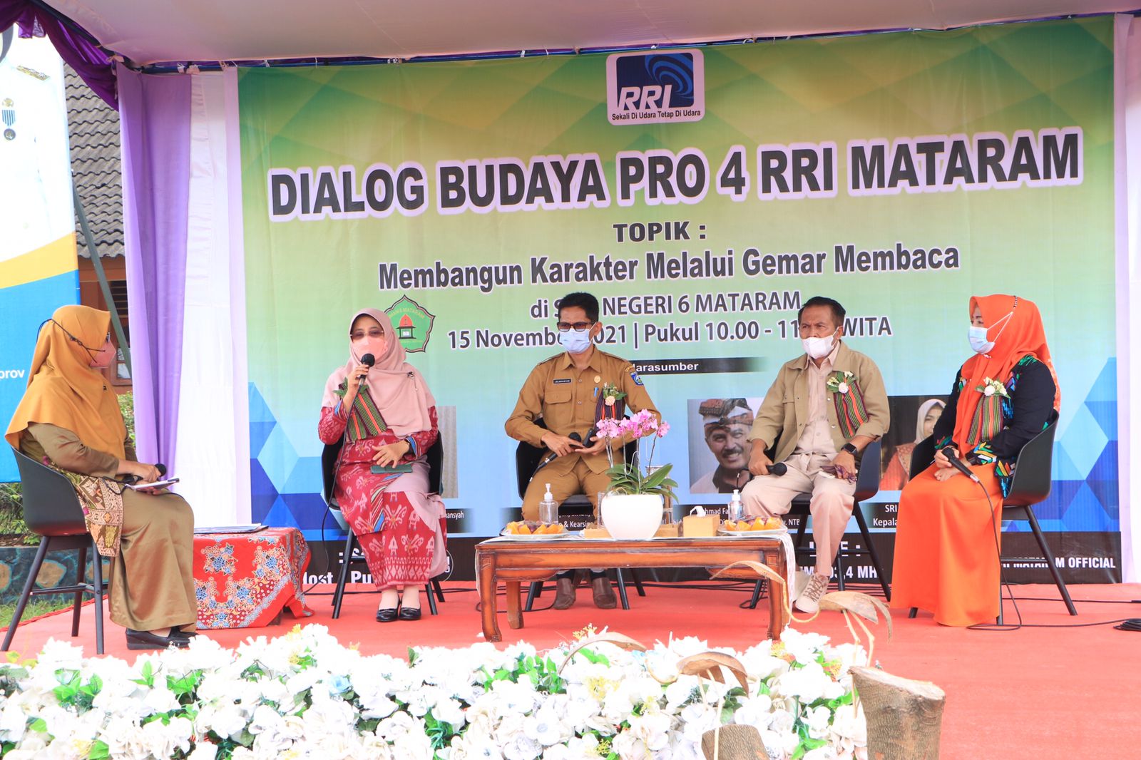 "Kita ingin mendorong kebiasaan membaca pada anak melalui gerakan literasi berbasis keluarga," ucap Bunda Literasi Provinsi NTB, Hj. Niken Saptarini Widyawati Zulkieflimansyah saat menjadi narasumber pada acara Dialog Budaya Pro 4 RRI Mataram, dengan tema "Membangun Karakter Melalui Gemar Membaca" di halaman SMAN 6 Mataram, Senin (15/11).