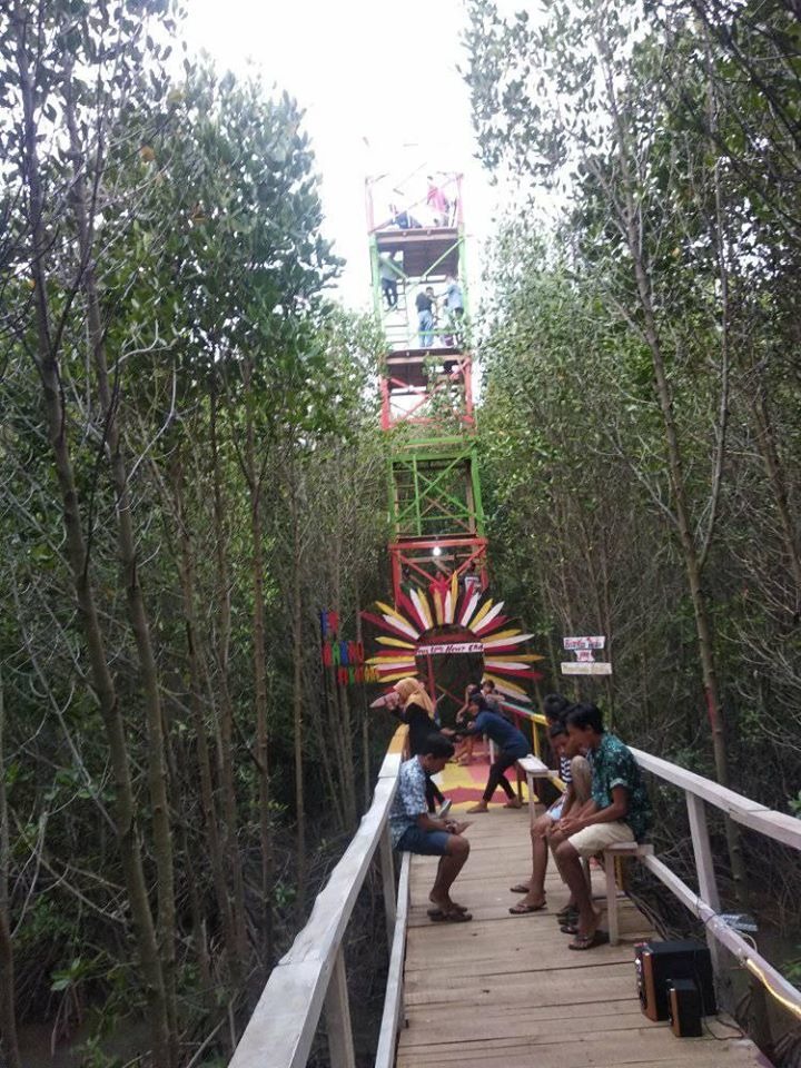 Juga dilengkapi sejumlah fasilitas pendukung, seperti jembatan lintasan membelah hutan bakau yang merupakan hasil tangan kreatif pemuda setempat. Jembatan kayu itu di cat warna warni sehingga menambah keanggunan dan indahnya lokasi ini. Ada juga menara atau gardu pandang yang memanjakan mata pengunjung, karena pengunjung bisa melihat pemandangan hutan mangrove dan pantai dari atas ketinggian belasan meter serta aula pertemuan yang dapat menampung banyak orang.