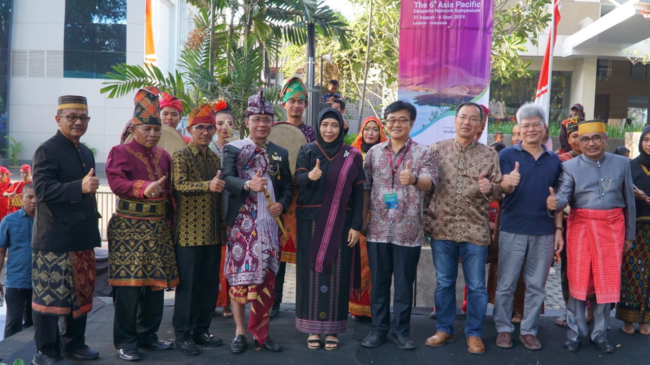 Foto: Wakil Gubernur NTB, Dr.Hj.Siti Rohmi Djalilah besama Prof.Dr. He Qingcheng selaku Koordinator APGN, Mr. Setsuya Nakada wakil Koordinator APGN, Mr. Tan Vn Tran selaku anggota APGN Advisory Committee, serta urut hadir Walikota Mataram menghadiri Heritage Carnaval 6th APGN Symposium 2019, di Mataram (1/9/2019).